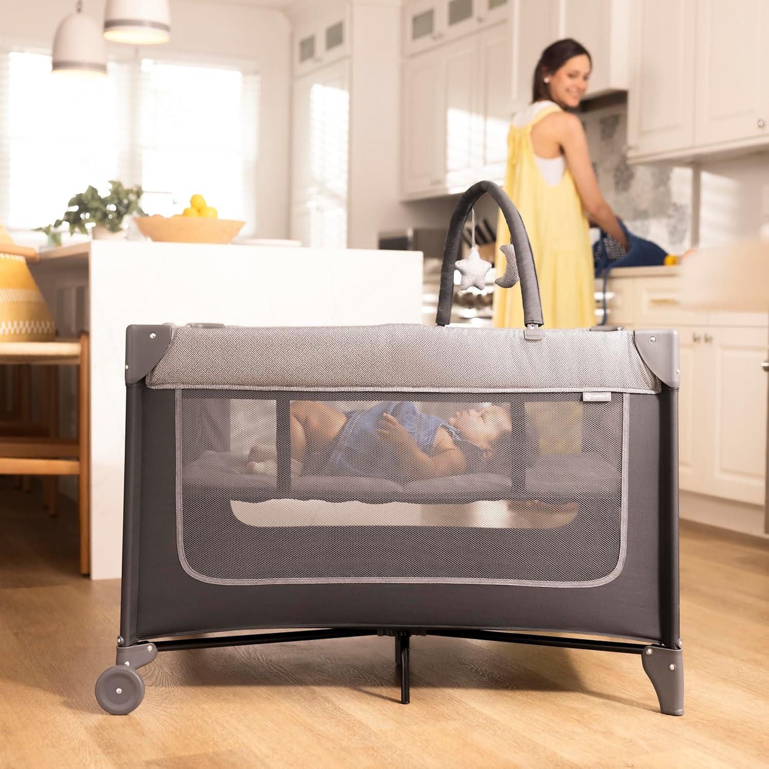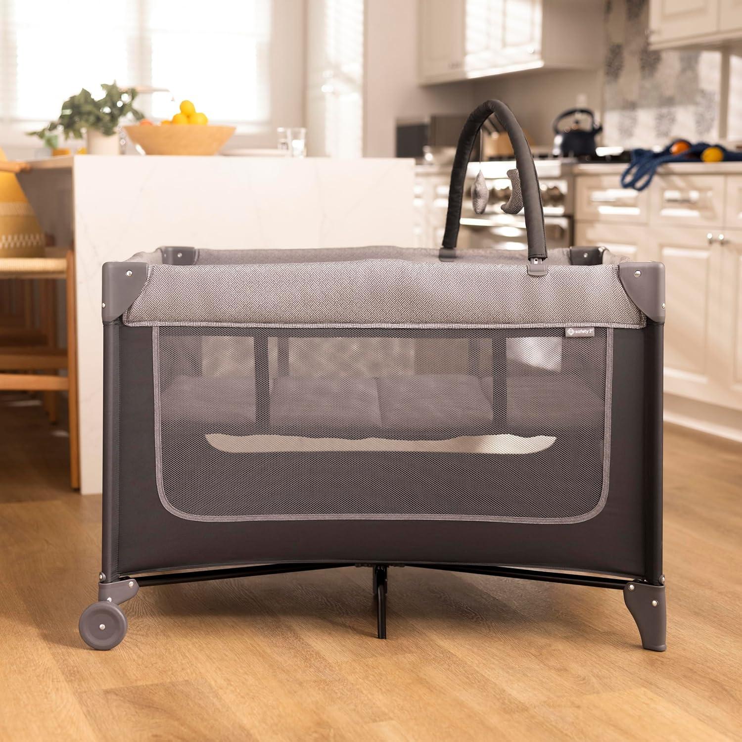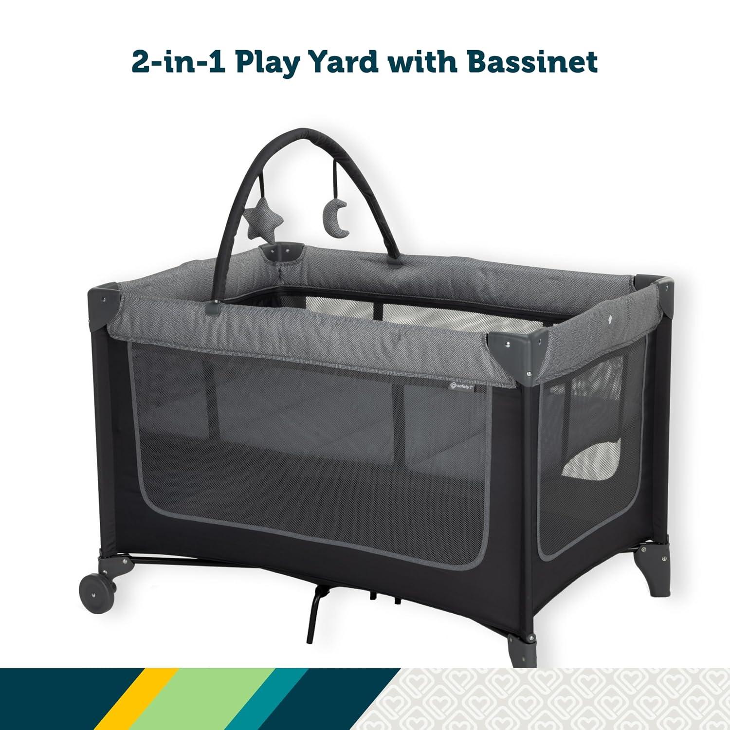 Safety 1st 4-in-1 Portable Play Yard with Bassinet, Napper, and Flip-Away Changer, Gray(2-in-1 Bassinet and Play Yard)