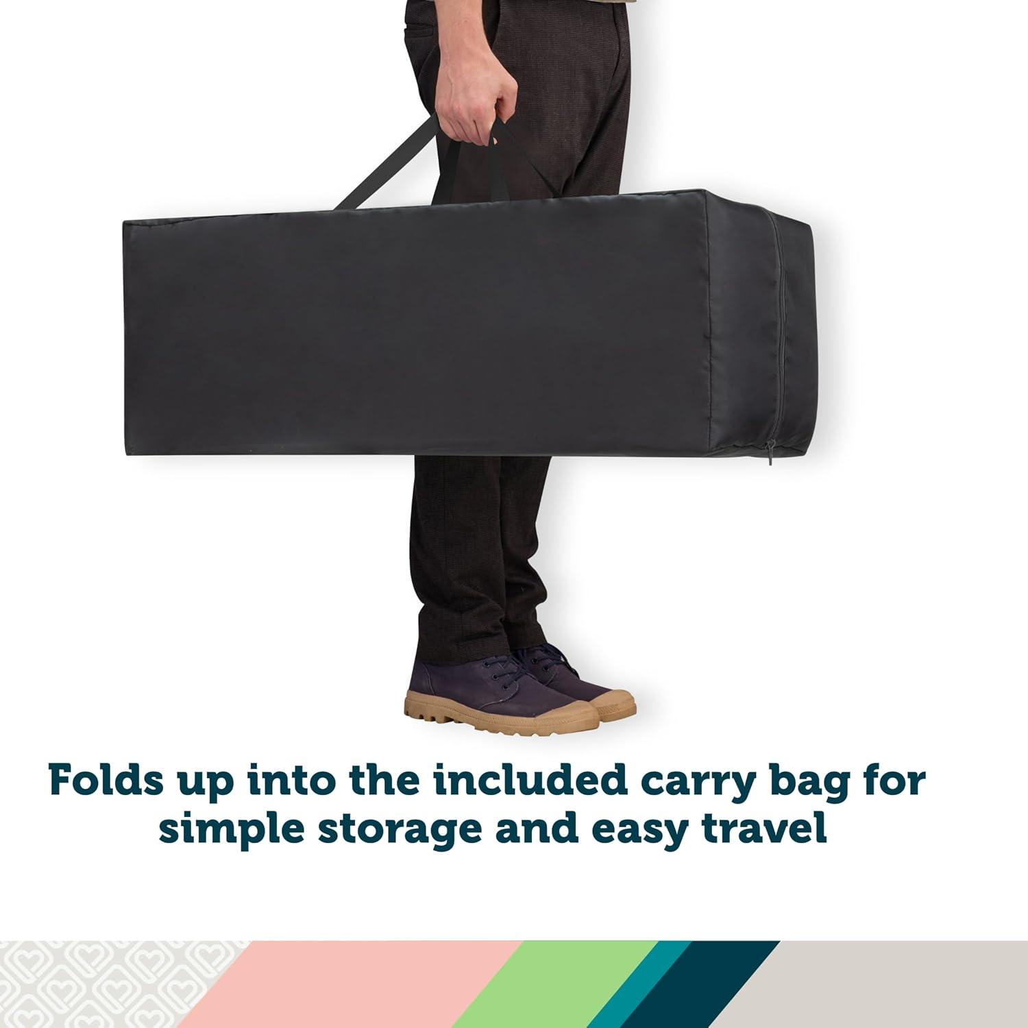 FOLDABLE AND PORTABLE PLAYPEN This 4-in-1 travel play yard and bassinet includes two wheels for ease of movement around the house. When not in use, it folds up for convenient storage and includes a carry bag for easy travel.