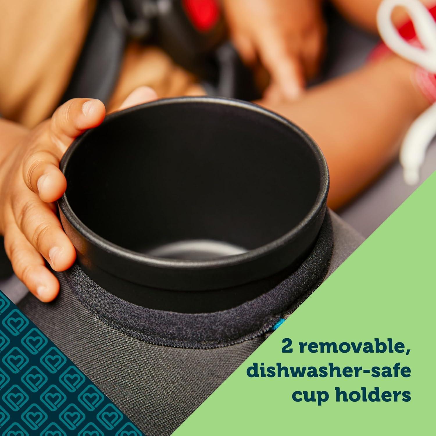 ADDITIONAL ALL IN ONE CAR SEAT FEATURES YOU’LL LOVE 2 removable, dishwasher-safe cupholders. Machine-washable and dryer-safe seat pad for easy cleaning. Engineered and tested to meet or exceed federal safety standards. Meets federal Side Impact standard.