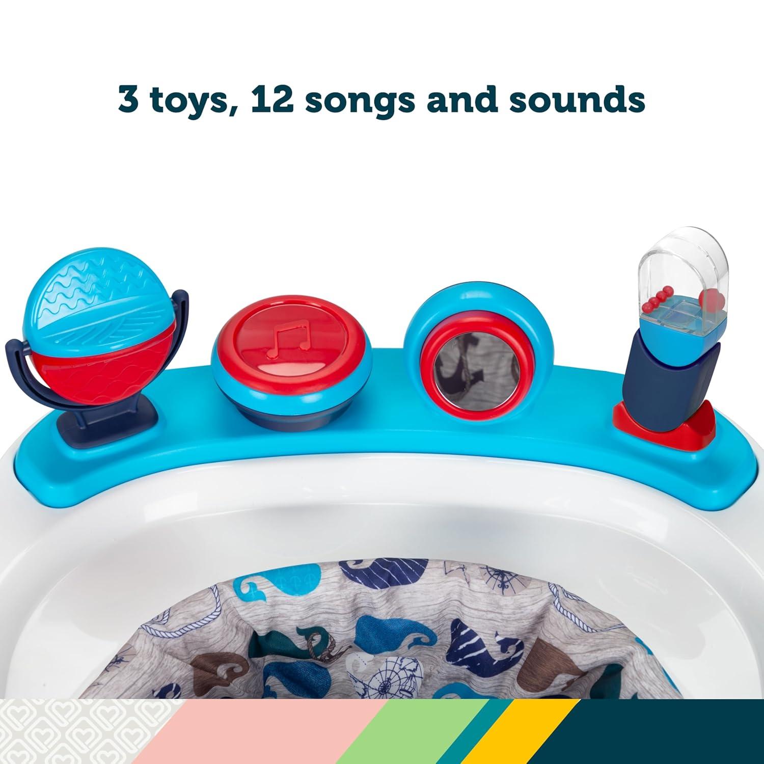 PLAYTIME FUN Our child walker plays 12 different songs designed to amuse and delight, while stimulating baby’s visual and auditory senses. It includes a large tray that’s great for snacks, with plenty of room for baby to play with toys.