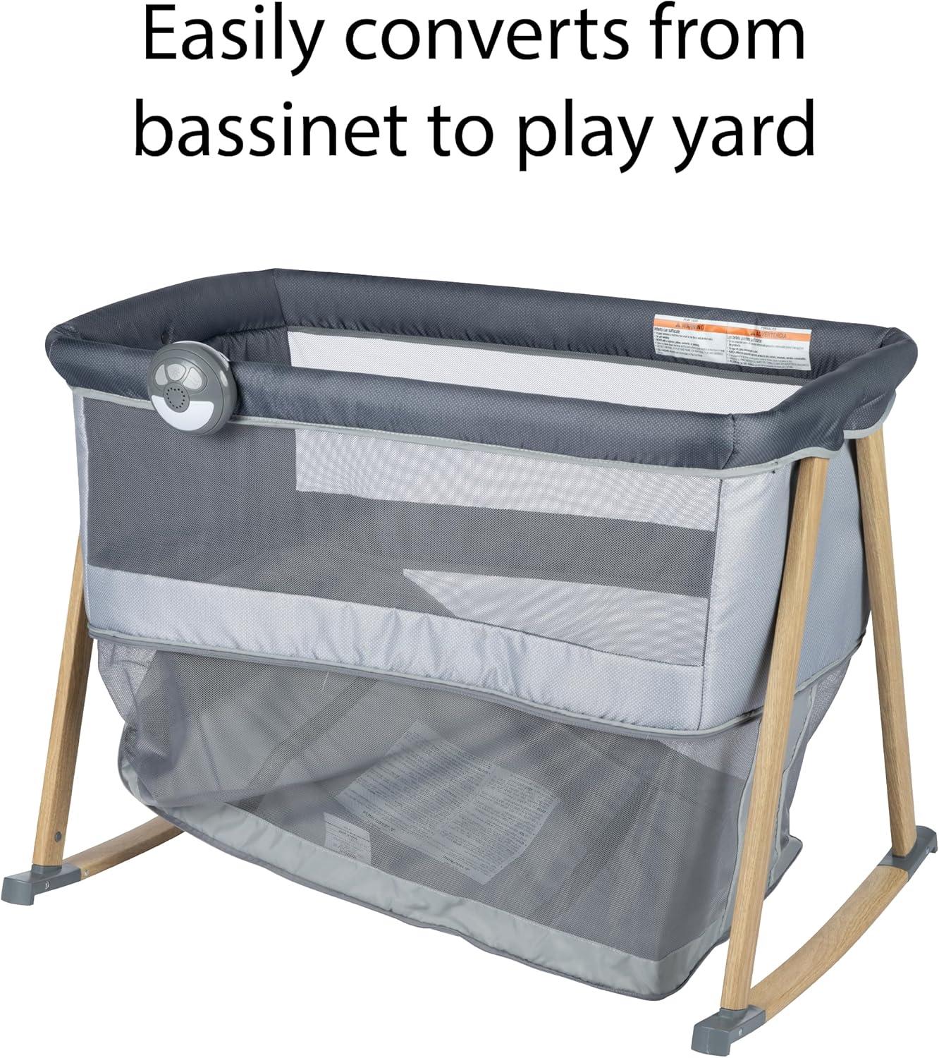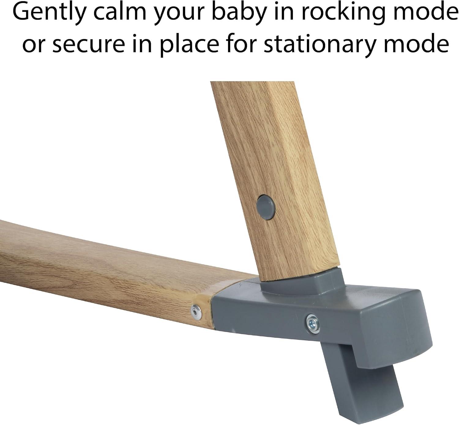 TWO BASSINET MODES Set the bassinet to rocking mode to gently calm your little one or choose to secure in place with stationary mode before laying baby down.